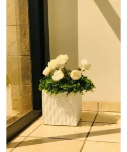 KANTE 12 in. H Square Pure White Concrete/Fiberglass Indoor Outdoor Elegant Retro Planter