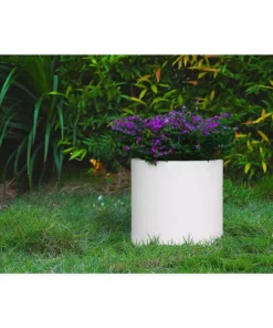 KANTE 9.8 in. W Round Pure White Concrete/Fiberglass Indoor Outdoor Modern Seamless Planter