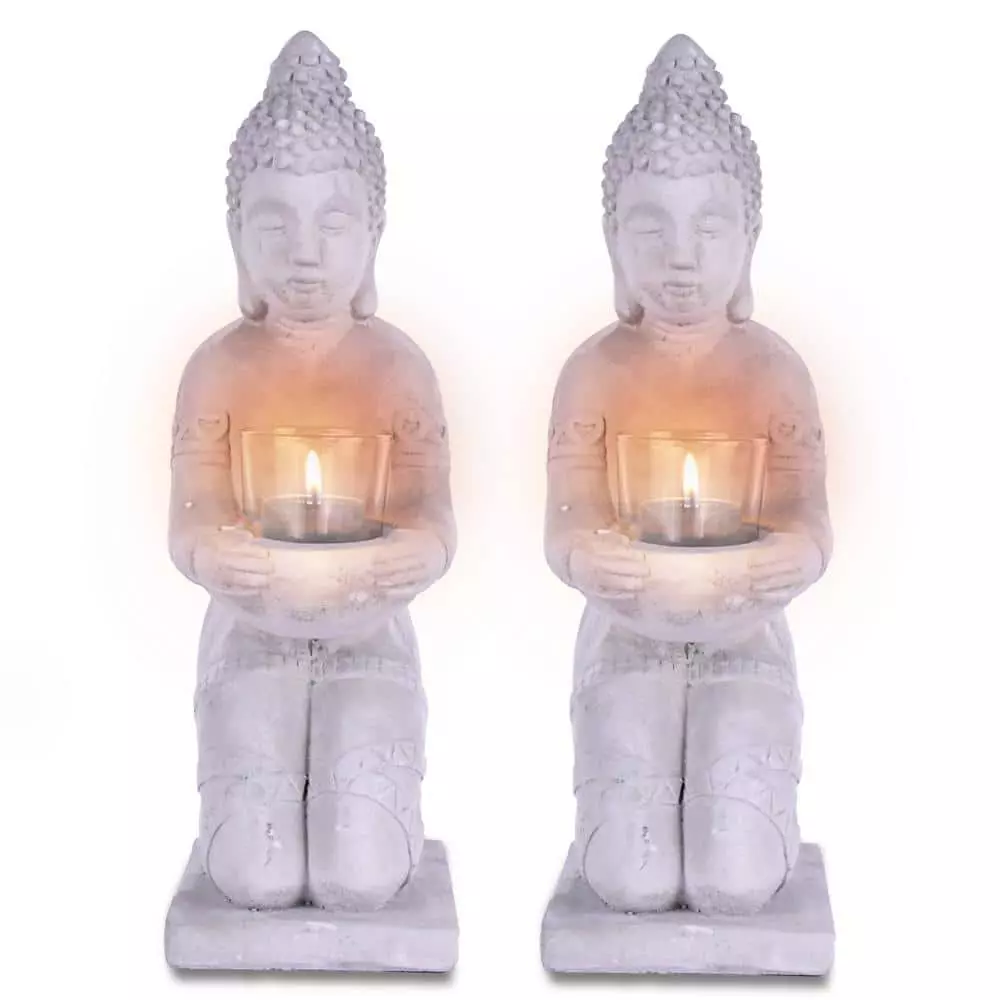 - Natural concrete look: these Buddha candle holders statues features a natural concrete look and are handmade through an Eco-friendly manufacturing process, with strong UV resistant ability that stays well in wind, rain, hot and cold season