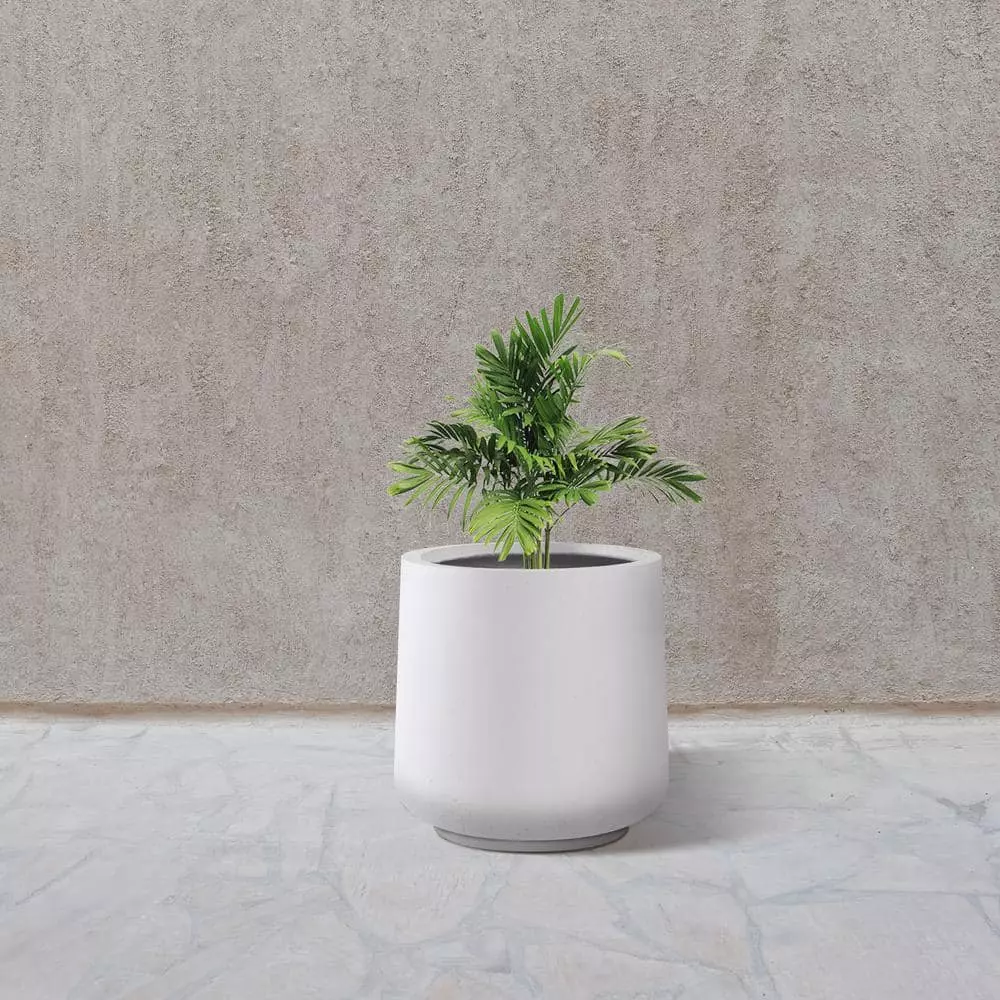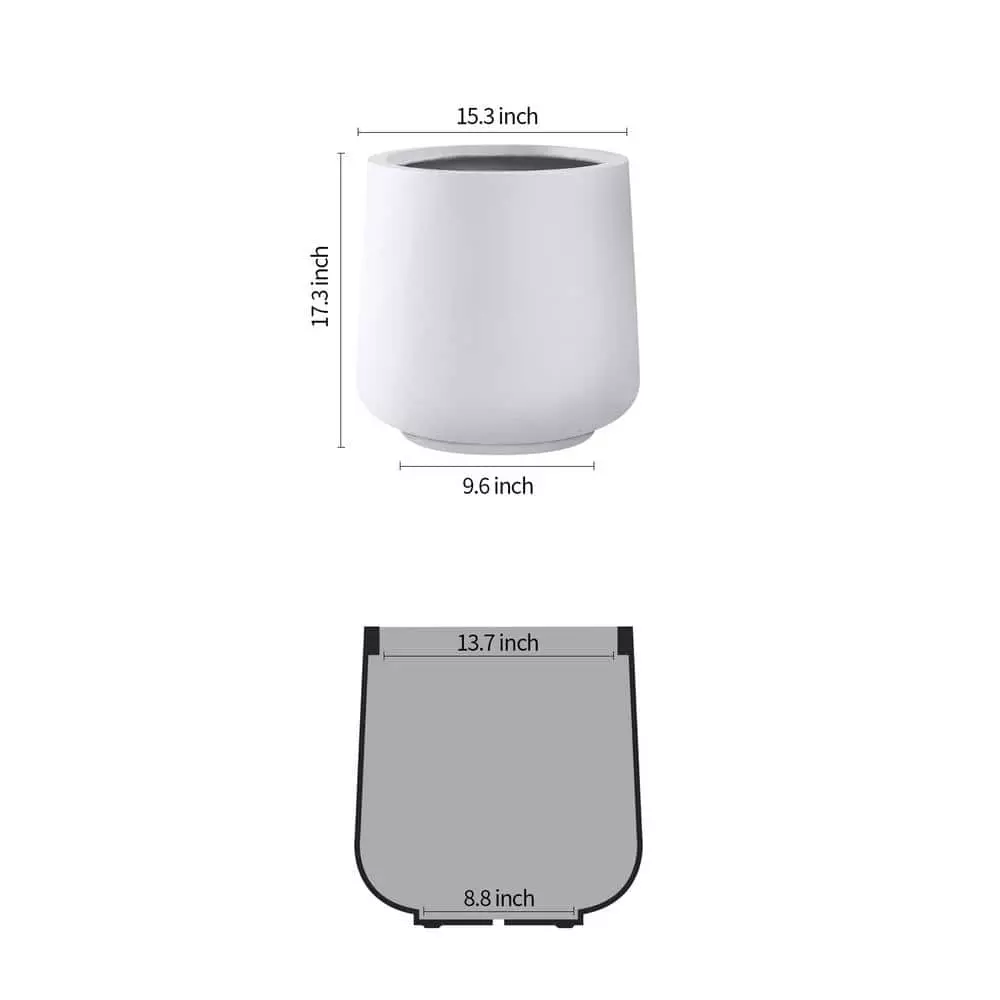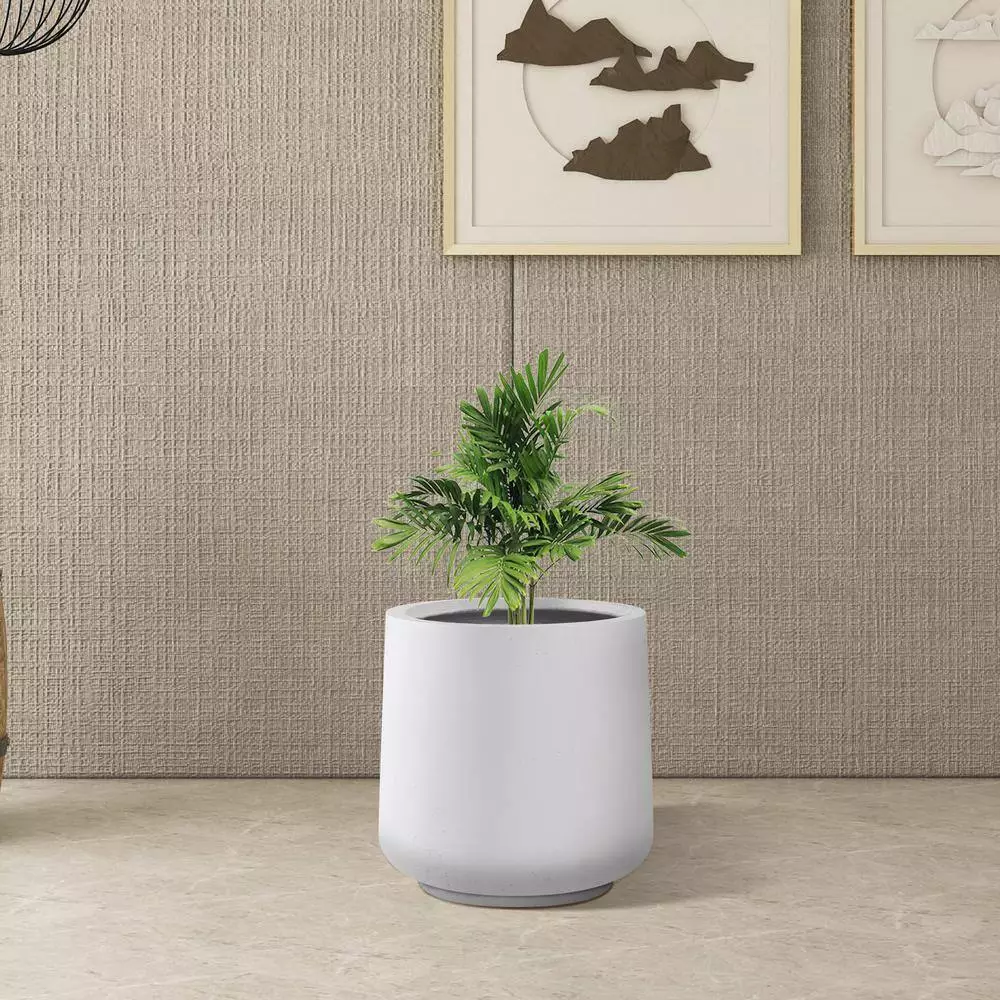 KANTE 17.3 in. H Round Pure White Concrete Planter, Outdoor Indoor Large Planter Pots Containers with Drainage Holes