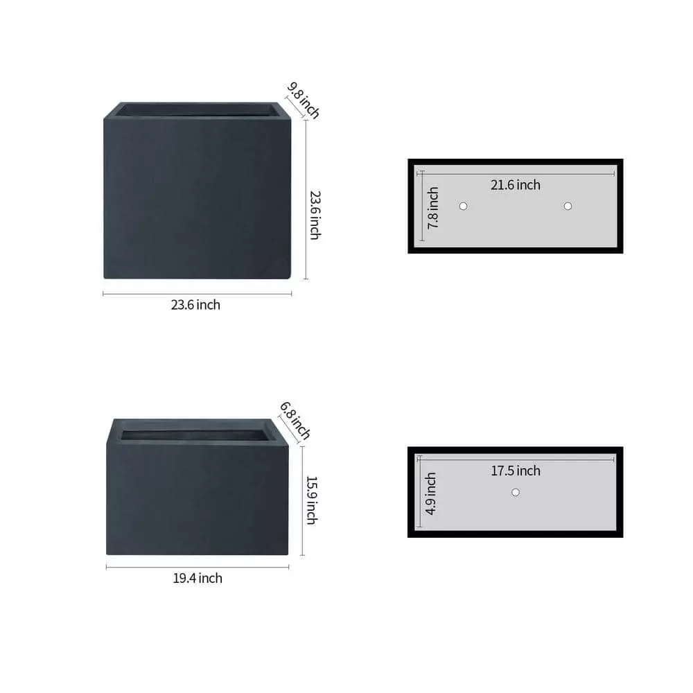 KANTE 23.6″ and 19.4″L Rectangular Charcoal Finish Lightweight Concrete Long Planter w/ Drainage Hole Set of 2 Outdoor/Indoor