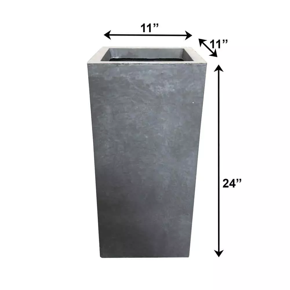 KANTE 24 in. H Square Slate Gray Concrete/Fiberglass Indoor Outdoor Elegant Tall Planter