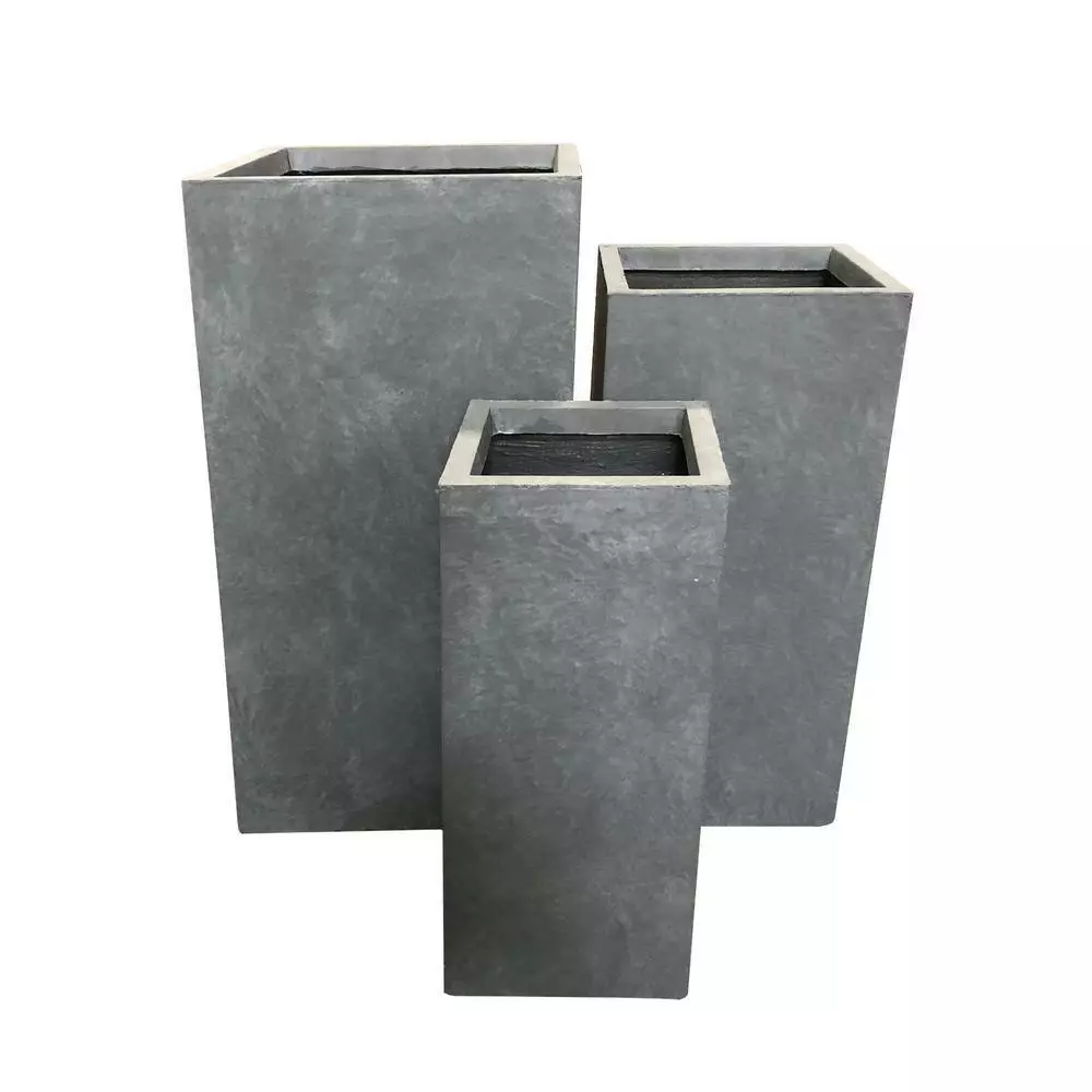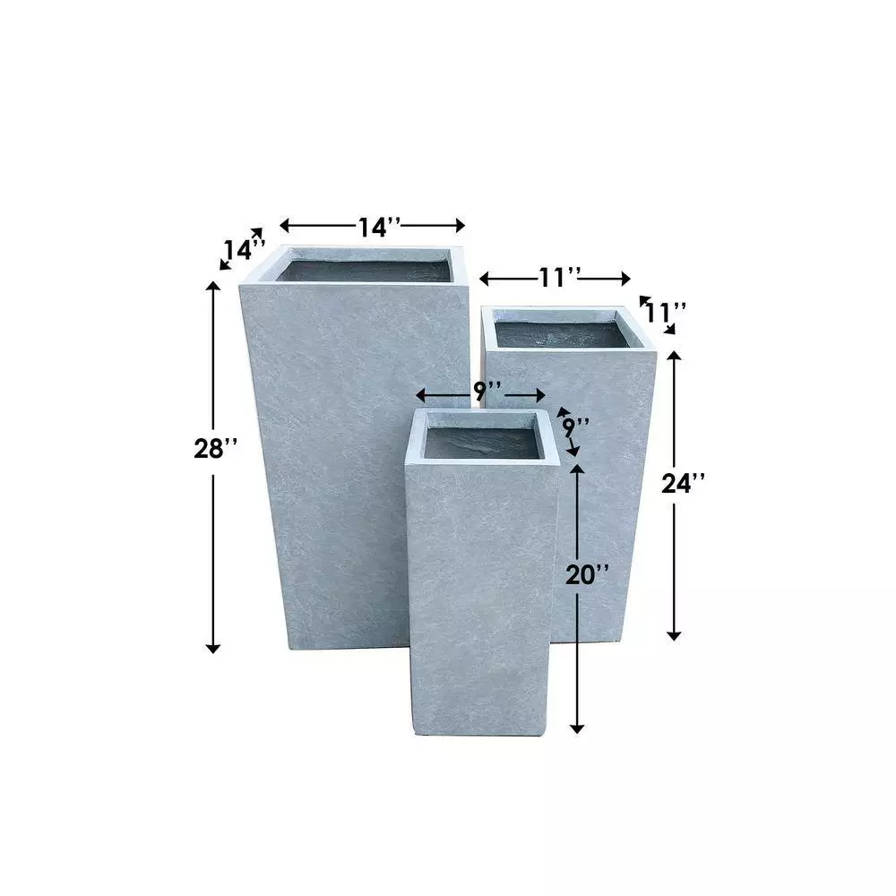 KANTE 28 in. x 24 in. and 20 in. H Square Slate Gray Concrete/Fiberglass Indoor Outdoor Modern Tall Planters