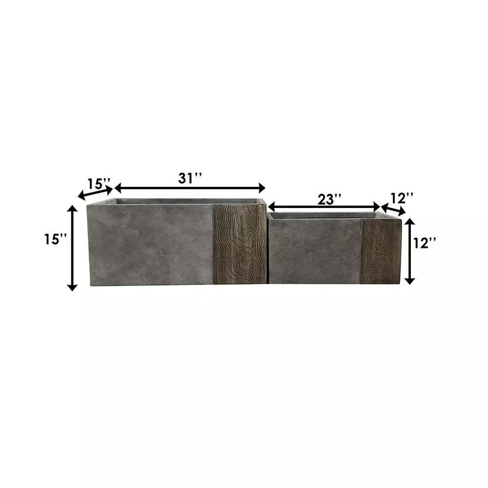 KANTE 31 in and 23 in. L Rectangular Lodgepole Concrete/Fiberglass Indoor Outdoor Elegant Long Planters (Set of 2)