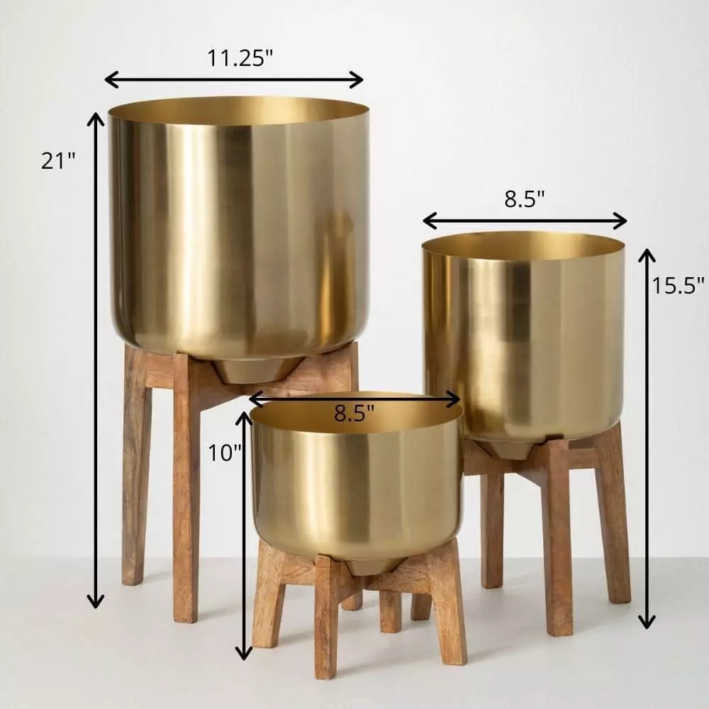 SULLIVANS Brass Planter On Stands - Set of 3 -Vigoro sales Store gold sullivans plant pots n2714 c3 1000