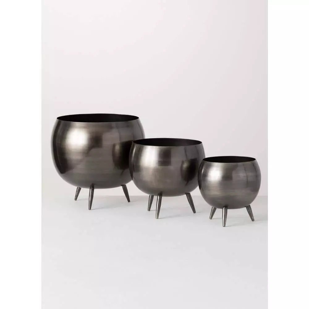 SULLIVANS Pewter Metal Pot With Feet (Set of 3) -Vigoro sales Store pewter sullivans plant pots met1626 1f 1000