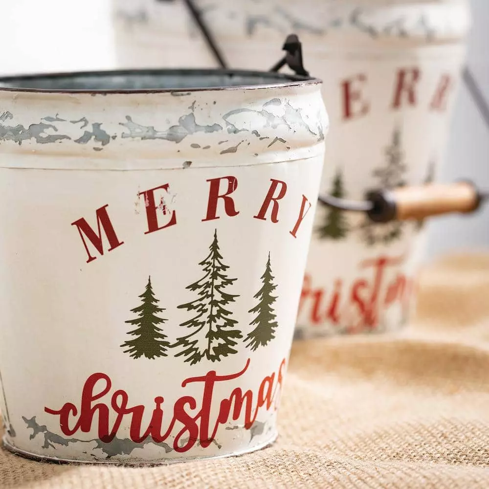 SULLIVANS White Merry Christmas Metal Bucket (Set of 2)