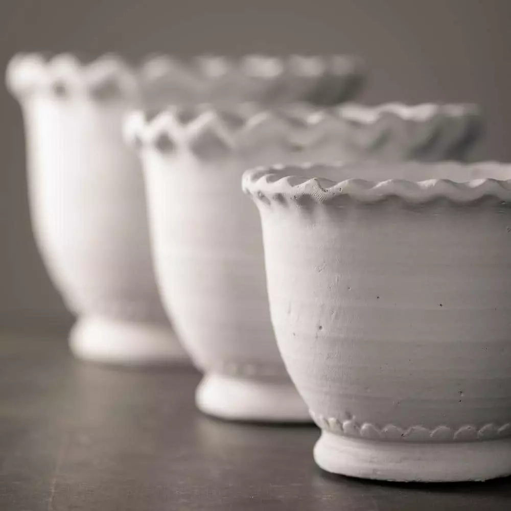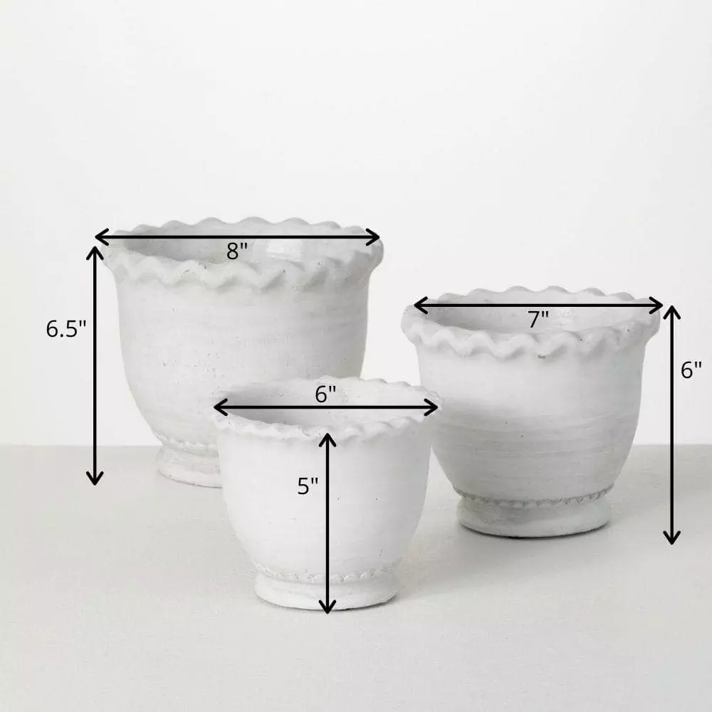 SULLIVANS Whitewashed Scalloped Edge Cement Pot – Set of 3