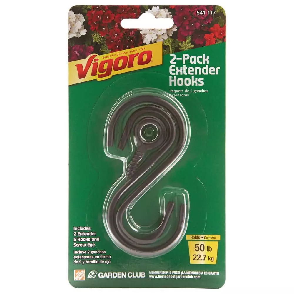 Vigoro 1.77 in. x 0.157 in. x 3.35 in. Black Metal Extender Hooks (2-Pack)