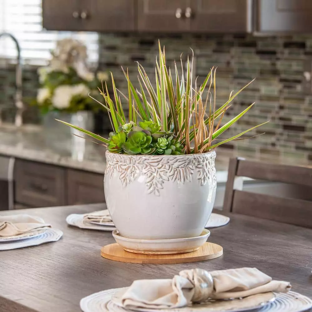 - Not designed to capture and hold excess water, due to the naturally absorbent nature of bamboo, this saucer should be in dry environments