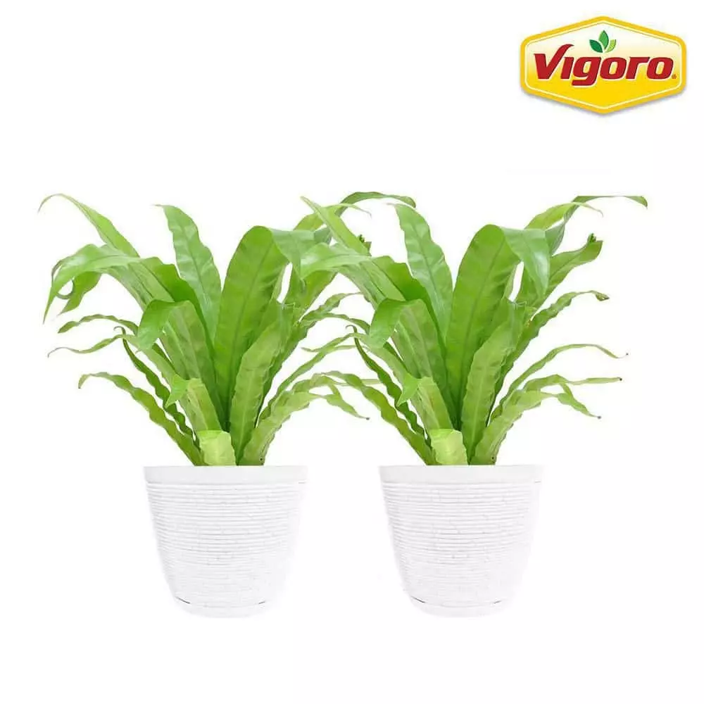 Vigoro 6 in. Bird’s Nest Fern Indoor Plant in Small White Ribbed Plastic Decor Planter (2-Pack)